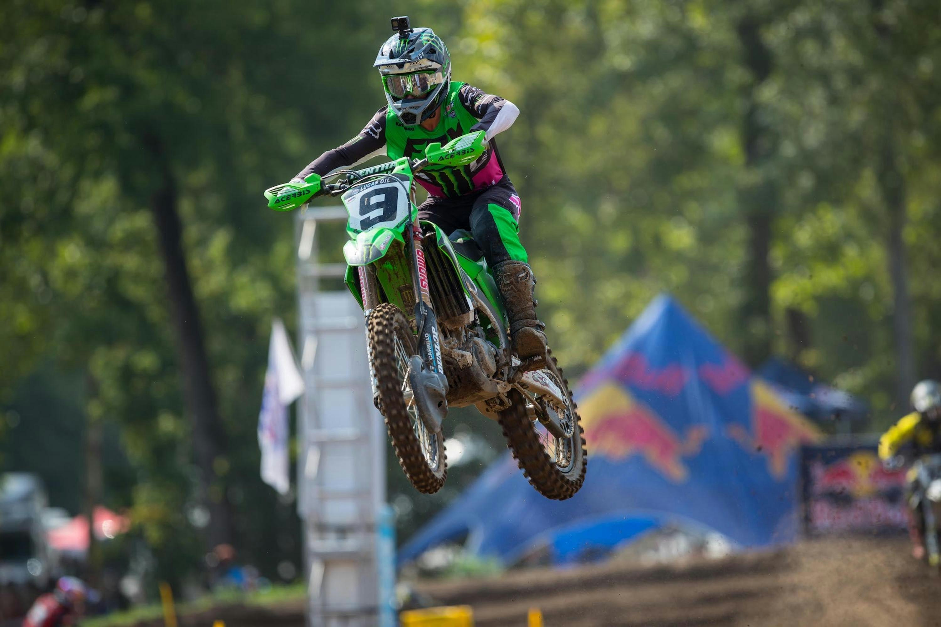 Monster Energy Kawasaki's Adam Cianciarulo made a name for himself at Loretta Lynn's, amassing one of the most successful records in the history of the AMA Amateur National Motocross Championship. So, when Cianciarulo found his way to the front of the field to start the second 450 Class moto it was a familiar position for the premier class rookie. Unfortunately, Cianciarulo's hold of the lead was short lived as a crash not only cost him the top spot, but effectively ended his hopes of a strong moto.