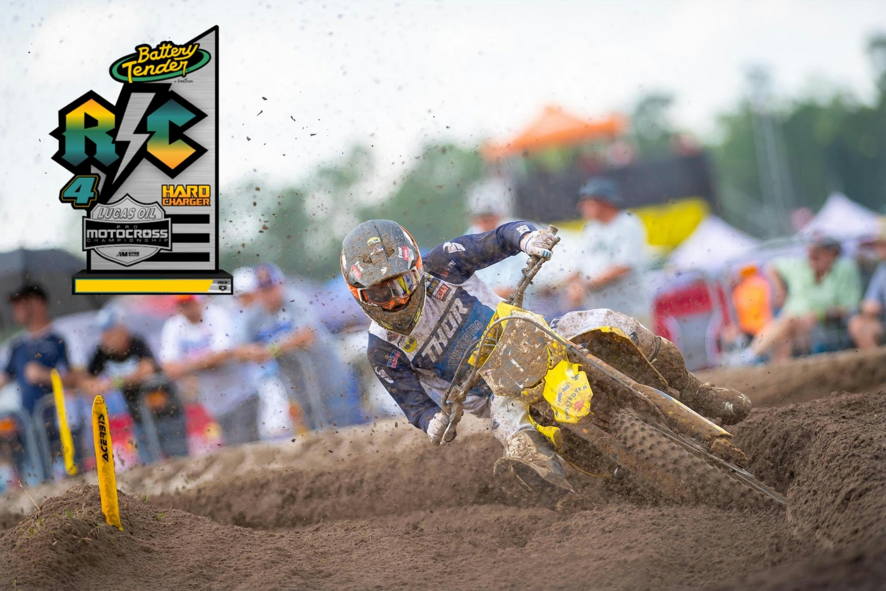 With more than 100 career wins and 10 career championships in the Lucas Oil Pro Motocross Championship, Ricky Carmichael is the standard bearer of success and it's why he's affectionately known as the G.O.A.T. (Greatest of All Time). In celebration of Carmichael's legacy Pro Motocross has been recognizing the most determined rider at each respective round of the championship with the Ricky Carmichael Hard Charger Award for more than a decade. This award recognizes the one competitor at each of the nine rounds on the schedule who overtakes the highest number of his fellow racers in either 450 Class moto.