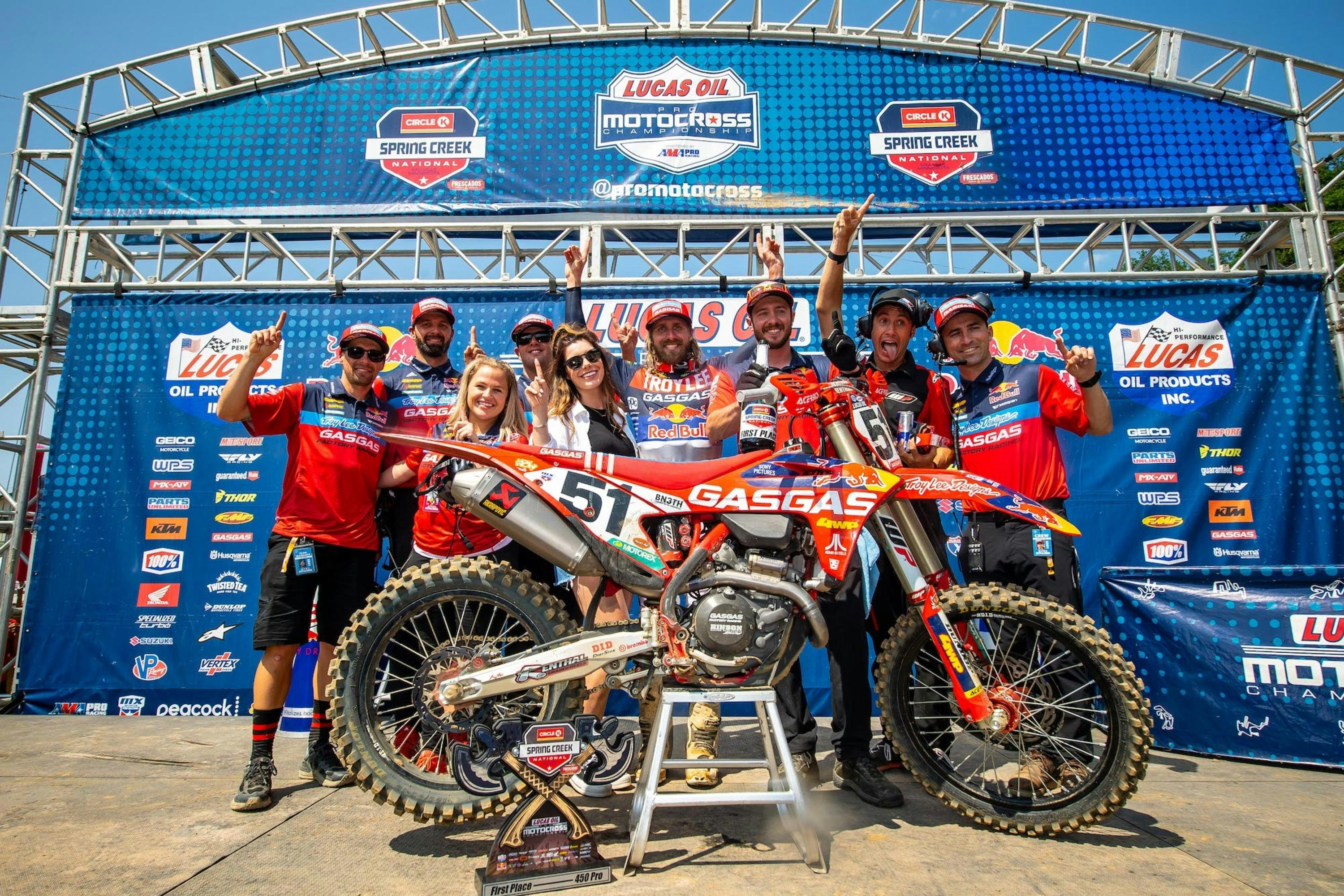 Entering the day all eyes in the 450 Class centered on Monster Energy/Star/Yamaha Racing's Dylan Ferrandis, who carried a three-race win streak into Spring Creek as the championship leader. However, as Ferrandis battled through his most difficult race to date this season it was Troy Lee Designs/Red Bull/GASGAS Factory Racing's Justin Barcia who seized the moment and put the spotlight on the sport's newest manufacturer, surging to his first win since the 2018 season and the maiden victory for the GASGAS brand.