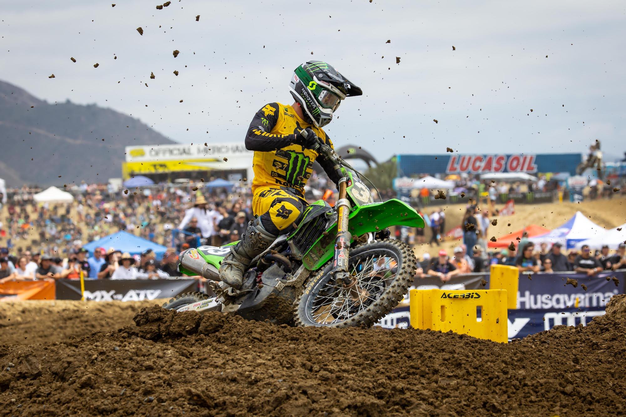 The battle for third tightened up considerably in the final 10 minutes of the moto as Cooper was forced to deal with a collection of riders. He lost hold of third to Rockstar Energy Husqvarna Factory Racing’s RJ Hampshire and continued to lose positions after that. That left the fight for third to be decided between Hampshire and a hard-charging Jo Shimoda aboard his Monster Energy/Pro Circuit/Kawasaki machine.