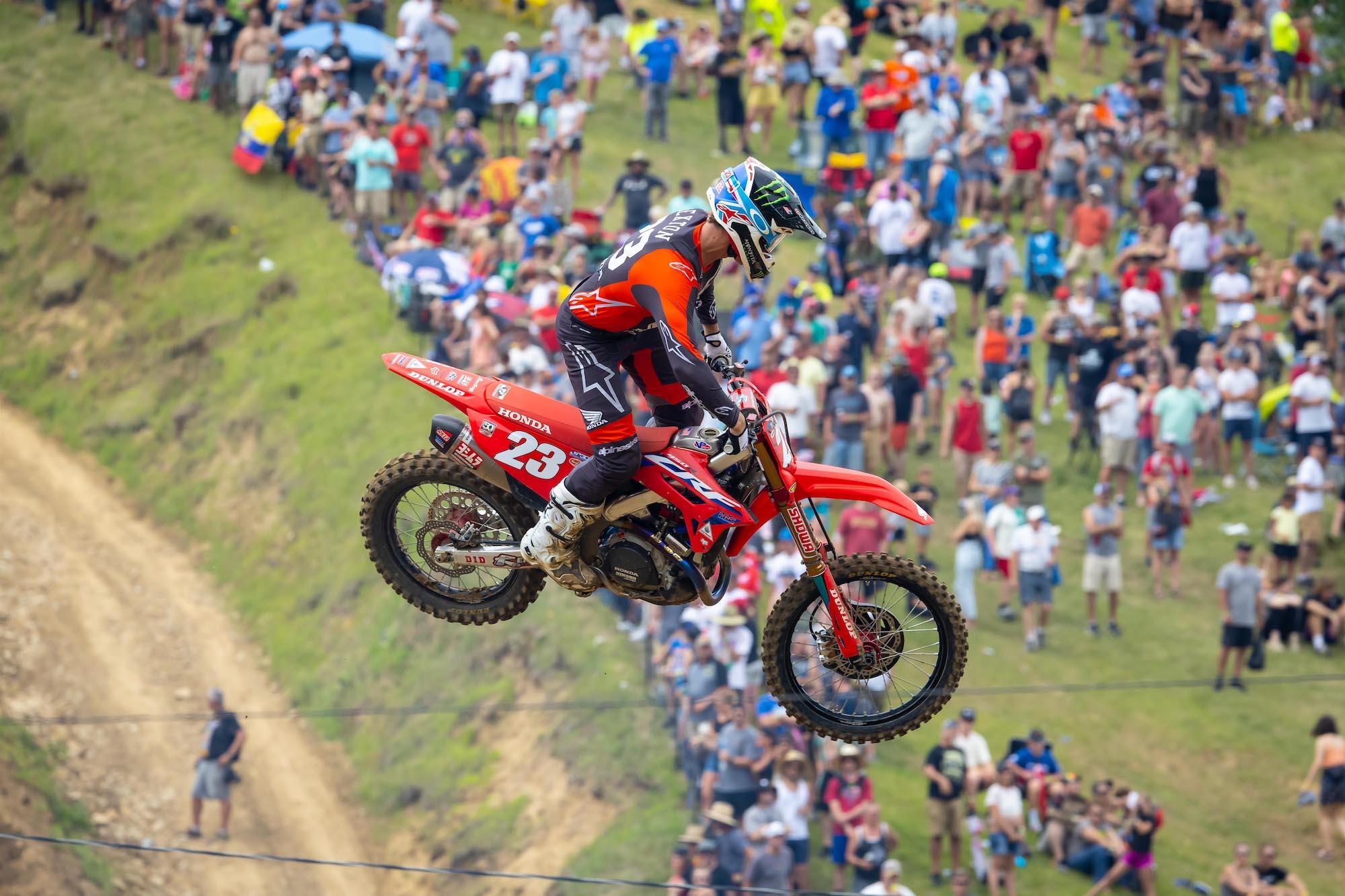 As the 40-rider field stormed down the longest start straight in Pro Motocross and into the first turn it was Jett Lawrence and Monster Energy Star Yamaha Racing’s Justin Cooper side-by-side for the MotoSport.com Holeshot. A slight bobble slowed Cooper’s momentum enough to give Lawrence the holeshot and early lead. A brief challenge by Team Honda HRC’s Jett Lawrence for second forced Cooper to push the pace and it ultimately carried him around Jett and into the lead. Unfortunately, Cooper tipped over shortly thereafter and dropped outside the top 10, which handed the lead to Hunter Lawrence as Jett Lawrence was slowed to avoid Cooper and lost second to Monster Energy/Pro Circuit/Kawasaki’s Seth Hammaker.