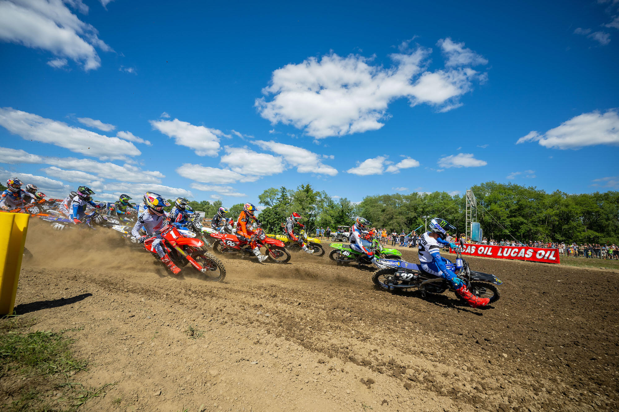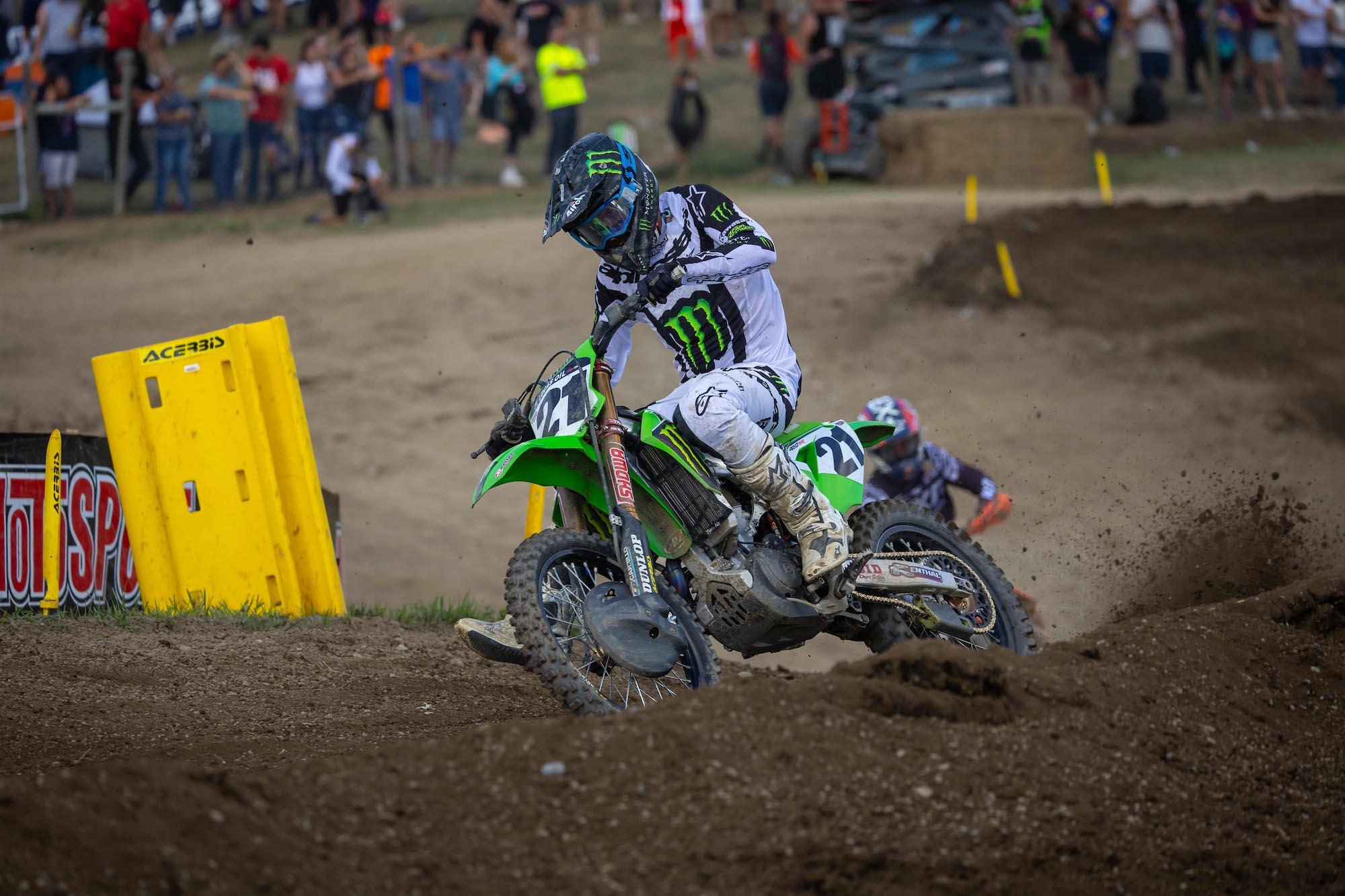A determined Tomac got around his teammate to move into second and then looked to chase down Roczen for the lead. The Yamaha rider showed patience and waited for his opening, then made a successful pass on his longtime rival in his first attempt. Behind them, Anderson made the move on Ferrandis for third and brought Sexton along with him for fourth.