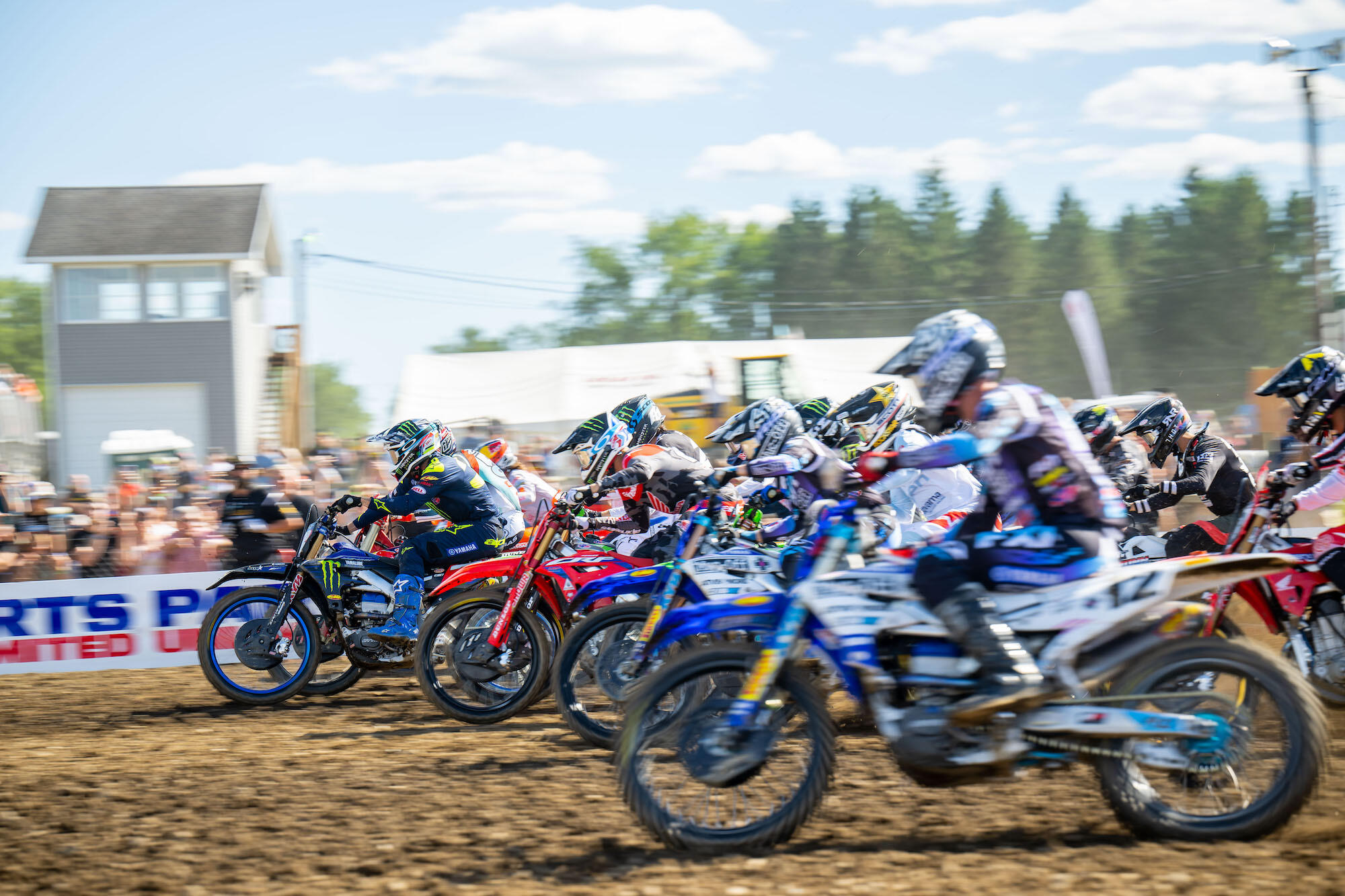 The first moto of the afternoon got underway with Monster Energy Star Yamaha Racing’s Nick Romano at the head of the pack, only to be passed by his teammate Justin Cooper for the MotoSport.com Holeshot. Romano then dropped another spot to Shimoda, who initially started third. Point leader and Team Honda HRC rider Jett Lawrence started just outside the top five. Cooper then crashed out of the lead but remounted quickly, resuming deep inside the top 10 of the running order.