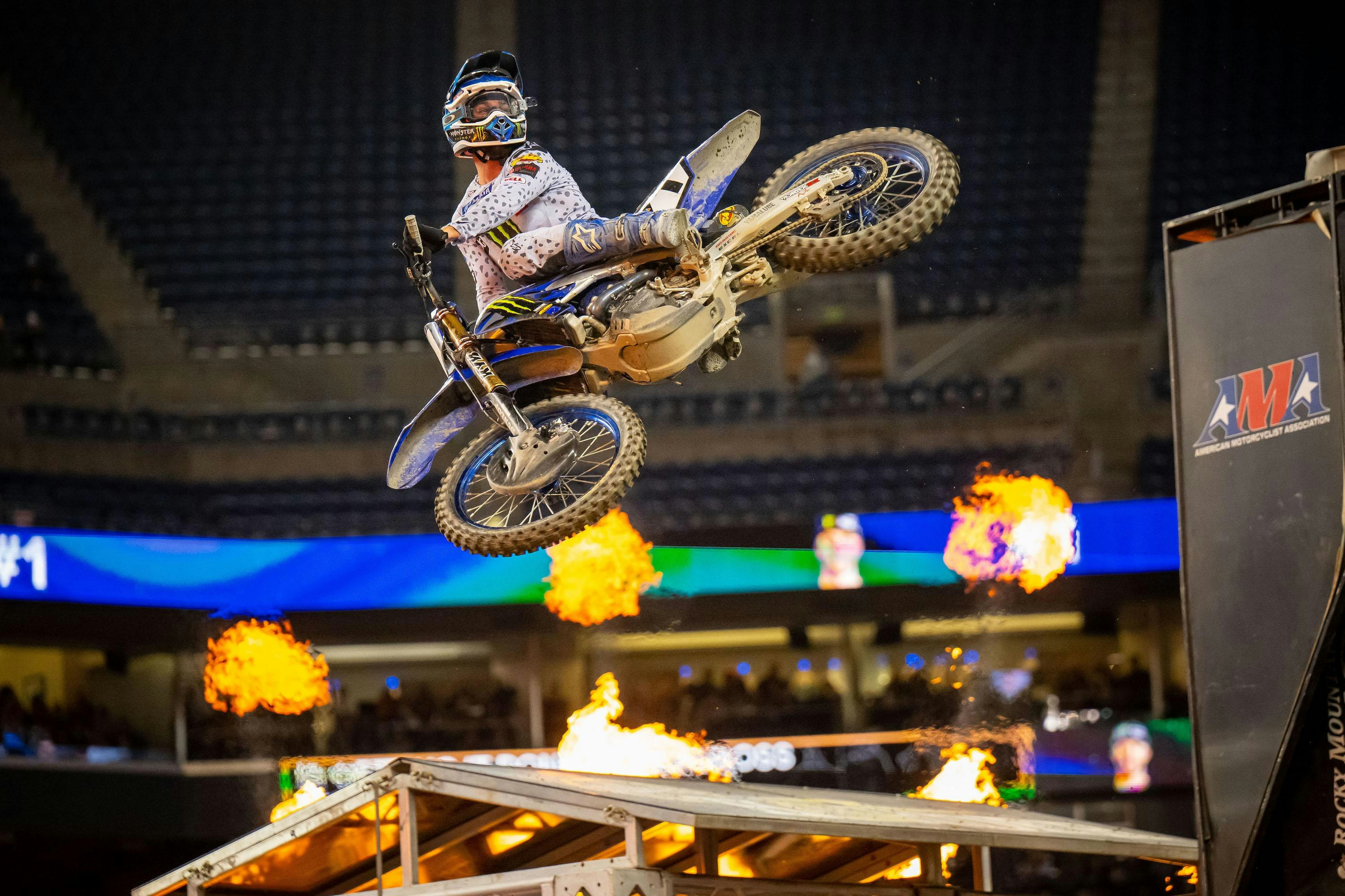The Monster Energy AMA Supercross series takes a rare break next weekend when the racers face off again inside State Farm Stadium in Glendale, Arizona on April 8th. The event will mark Round 12 of the 17-round Supercross series as well as Round 12 of the brand-new 31-round SuperMotocross World Championship. The new SuperMotocross League encompasses every Monster Energy AMA Supercross round and every AMA Pro Motocross round and culminates with two Playoff rounds and a Final all held at landmark sports venues in September. The SuperMotocross League pays a cool $1,000,000 to the 450 class champion and $500,000 to the 250 class champion.