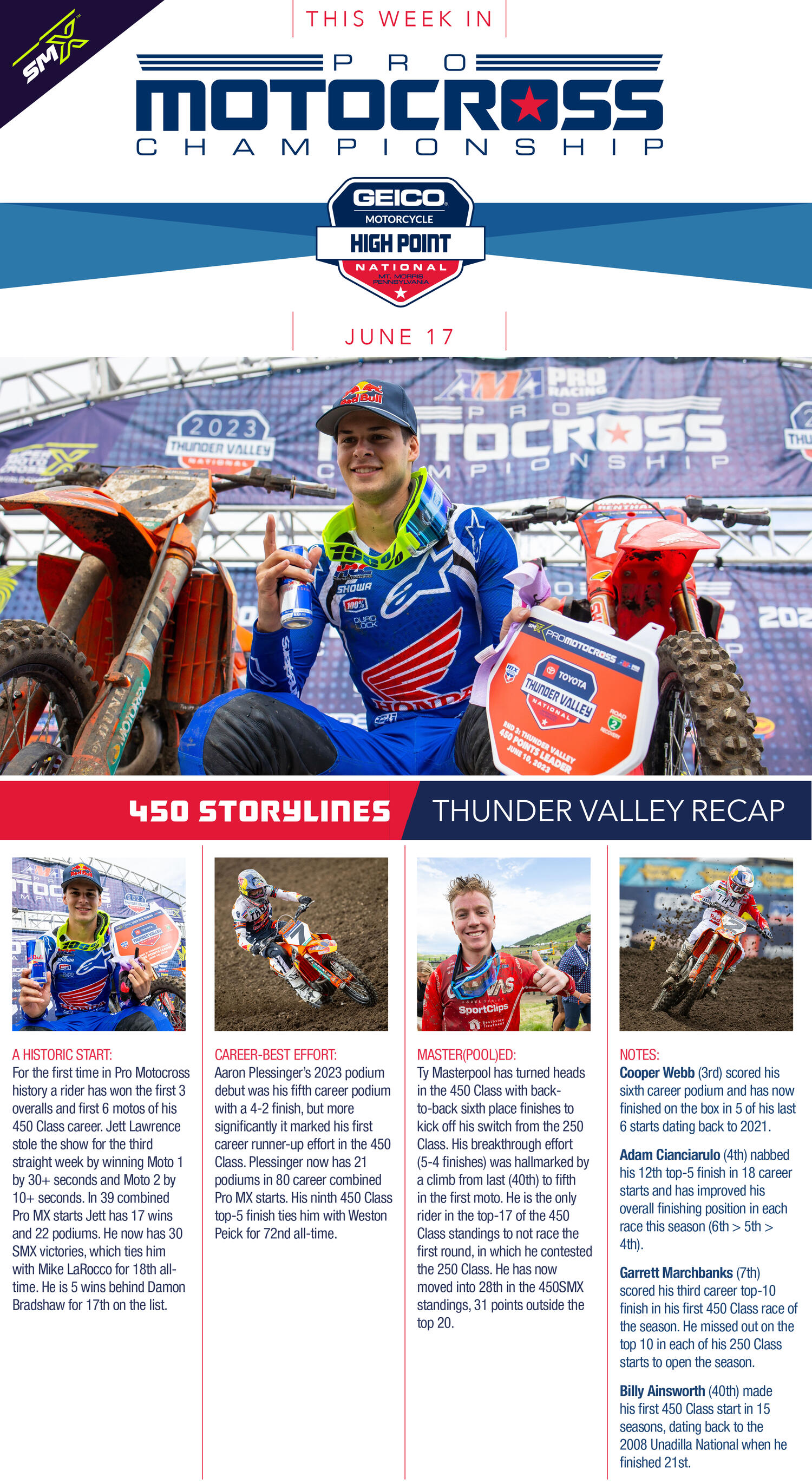 This Week in Pro Motocross: GEICO Motorcycle High Point NationalThursday, June 15, 2023 | 12:00 PM Home News SuperMotocross This Week in Motocross: 2023 High Point National