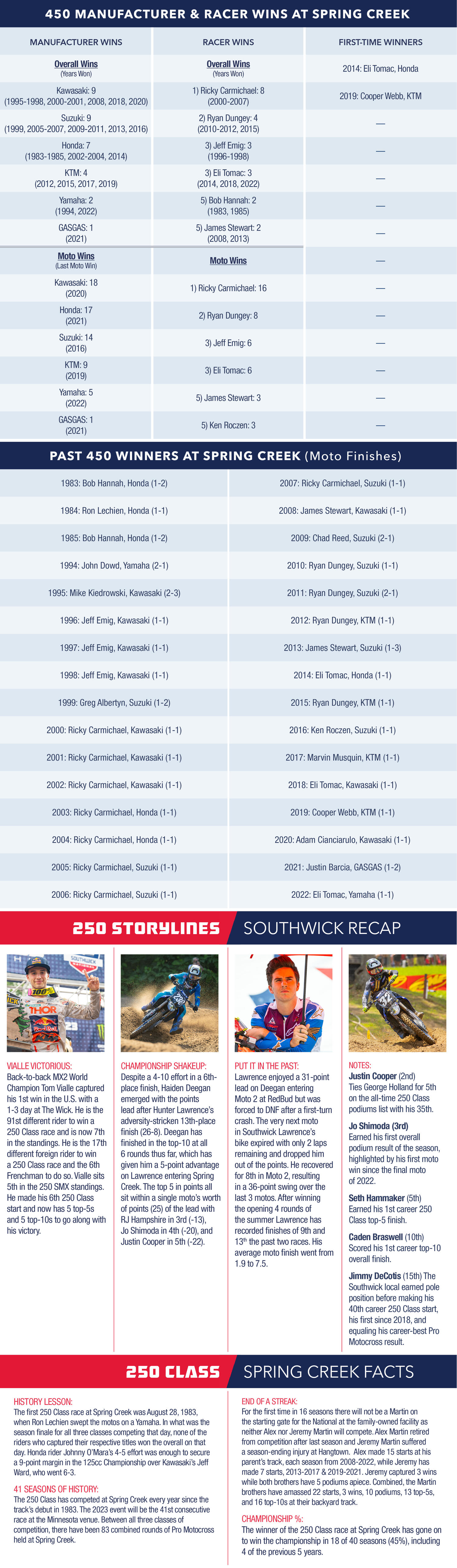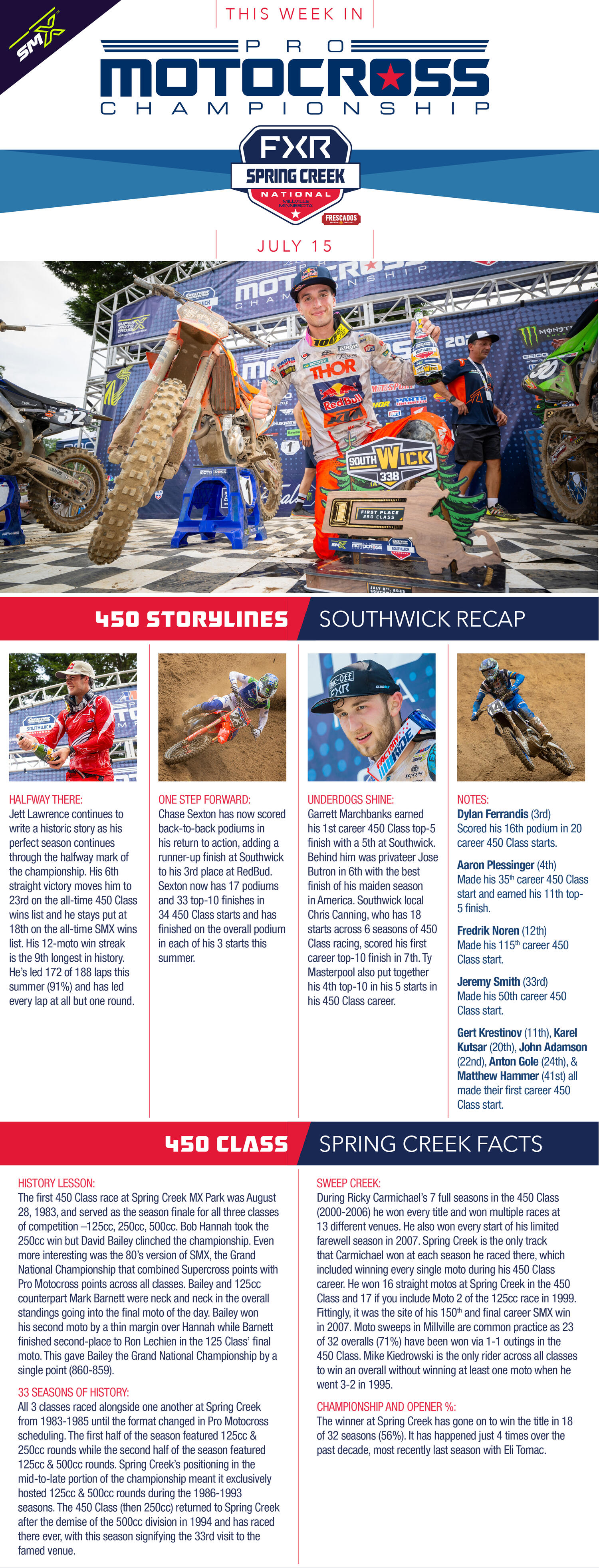 This Week in Pro Motocross: FXR Spring Creek NationalThursday, July 13, 2023 | 2:00 PM Home News SuperMotocross This Week in Motocross: 2023 Spring Creek National