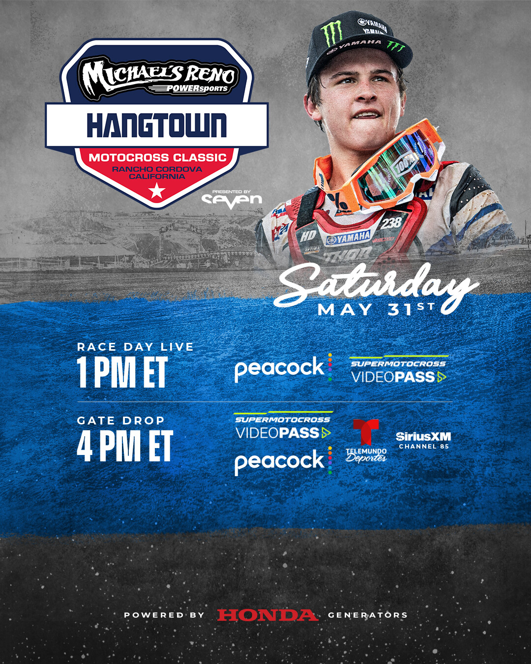 Don't miss all the action tomorrow - Saturday, May 31st - It's round two of the 2025 Pro Motocross Championship set at the Michael's Reno Powersports Hangtown Motocross Classic from Rancho Cordova, CA.