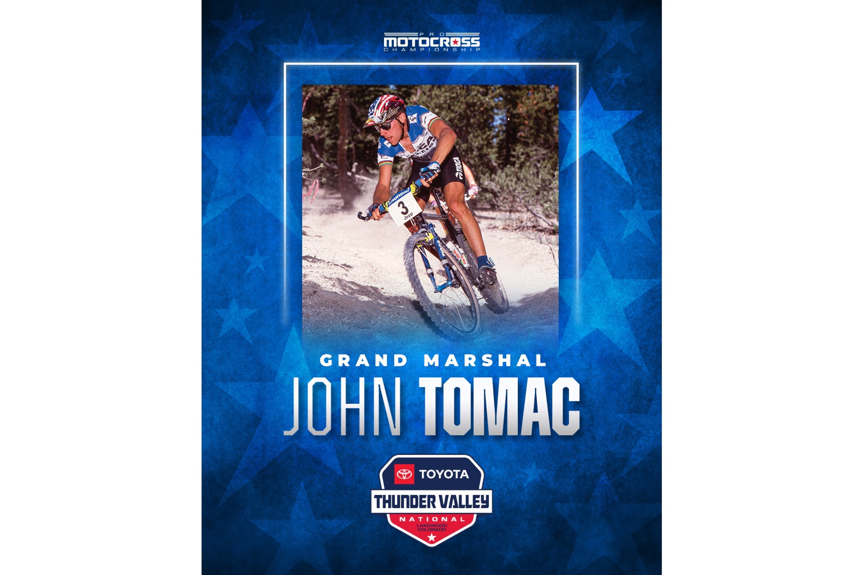MX Sports Pro Racing, Inc., in conjunction with event organizer David Clabaugh, has announced that longtime Colorado resident, U.S. Bicycling Hall of Famer, and Mountain Bike Hall of Fame icon John Tomac will be honored as Grand Marshal of this weekend’s Toyota Thunder Valley National, the third race of the 2025 Pro Motocross Championship, sanctioned by AMA Pro Racing. In this role, Tomac will participate in several engagements at the event in celebration of a storied competitive career in which he became the proverbial “G.O.A.T.” of mountain bike racing as a trailblazer for the sport. Additionally, Tomac’s notoriety has carried over into the sport of motocross as the father of active legend Eli Tomac, a four-time Pro Motocross 450 Class Champion, whom John has mentored and trained throughout Eli’s decorated career. John also carries the distinction of being an AMA Amateur National Motocross Champion at Loretta Lynn’s, having captured the Vet B/C 30+ crown during the 2001 event.