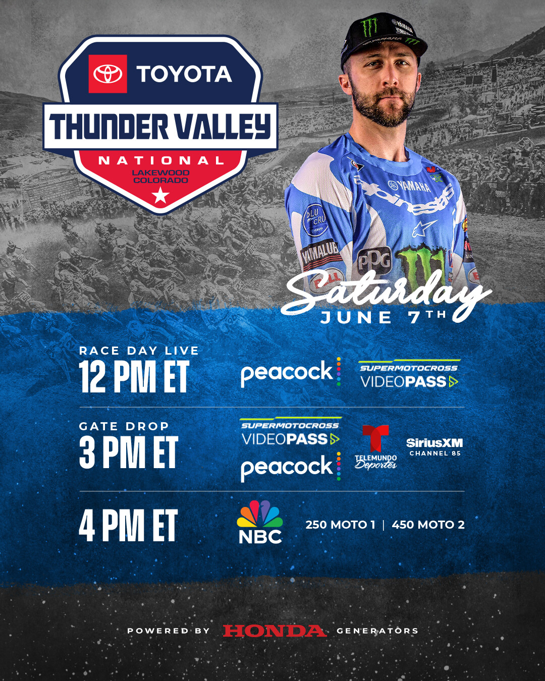 Don't miss all the action tomorrow - Saturday, June 7th - It's round three of the 2025 Pro Motocross Championship set at the Toyota Thunder Valley National from Lakewood, CO.
