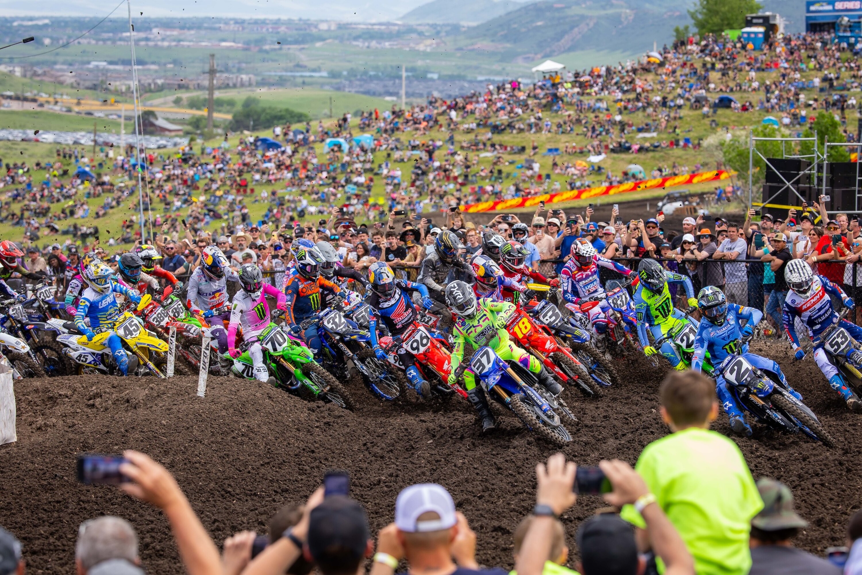 An aggressive Hunter Lawrence was able to wrestle the lead away from Schock as Cooper followed through into second to initiate a battle for the lead. Jett Lawrence made additional passes to slot into third. Back out front, Cooper made the pass for the lead as the Lawrences battled for second. Behind them, Plessinger and Tomac got by Schock and looked to close in on the lead trio.