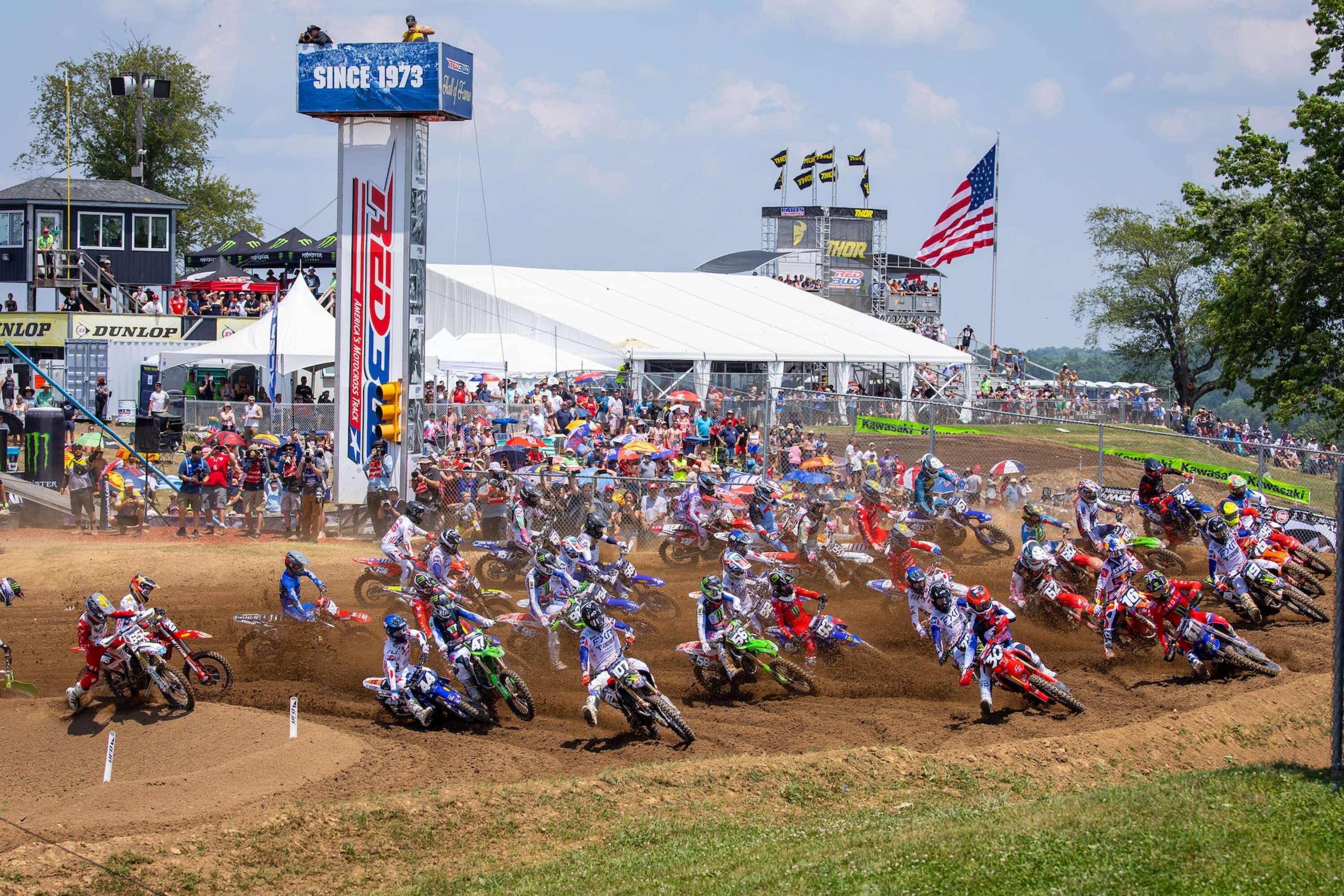 Out front, Jett Lawrence’s lead eventually surpassed 10 seconds as he surged to his ninth moto win of the season by 16.1 seconds over Hunter Lawrence. Hampshire captured his first career moto podium in third, followed by Monster Energy Yamaha Star Racing’s Justin Cooper in fourth. Red Bull KTM Factory Racing’s Chase Sexton finished fifth, as the reigning series champion and defending RedBud winner made his anticipated return to action following a crash at the opening race of the season.