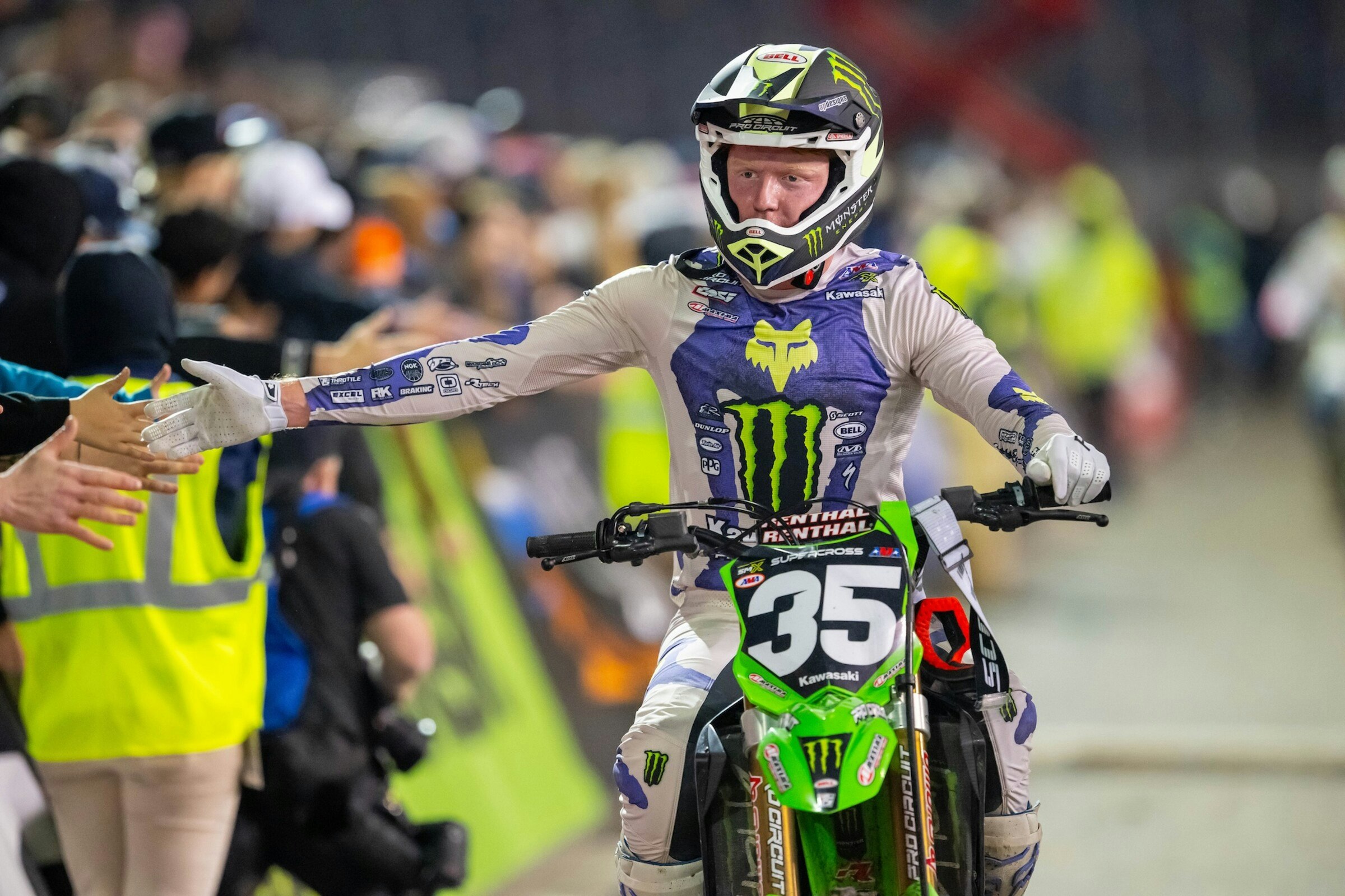 Monster Energy Pro Circuit Kawasaki rider Drew Adams is on the mend following a first-lap incident during the second race of the Eastern Divisional 250SMX Class Triple Crown in Cleveland. Adams was landed on by Monster Energy Yamaha Star Racing's Cole Davies and suffered a wrist and thumb injury to his left hand that will sideline him indefinitely. His status for the start of the Pro Motocross Championship on May 30 is uncertain. The injury is to the same surgically repaired hand that sidelined Adams for multiple rounds due to a a broken thumb suffered at Daytona.